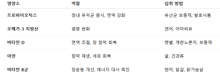 소화기 건강의 핵심은 장내 균형과 염증 억제, 그리고 규칙적인 식습관입니다.